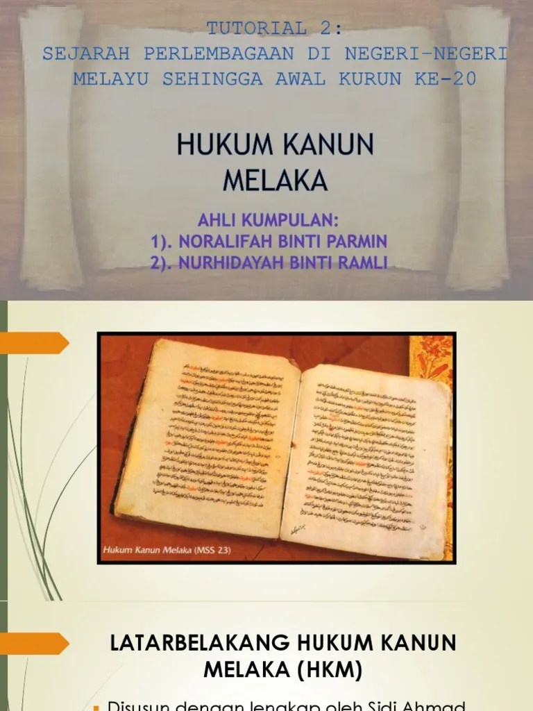 Dua undang undang docx terdapat dua undang undang 1 hukum kanun melaka 44 fasal isi kandungan 1 tanggungjawab raja dan pembesar 2 pantang larang dalam .